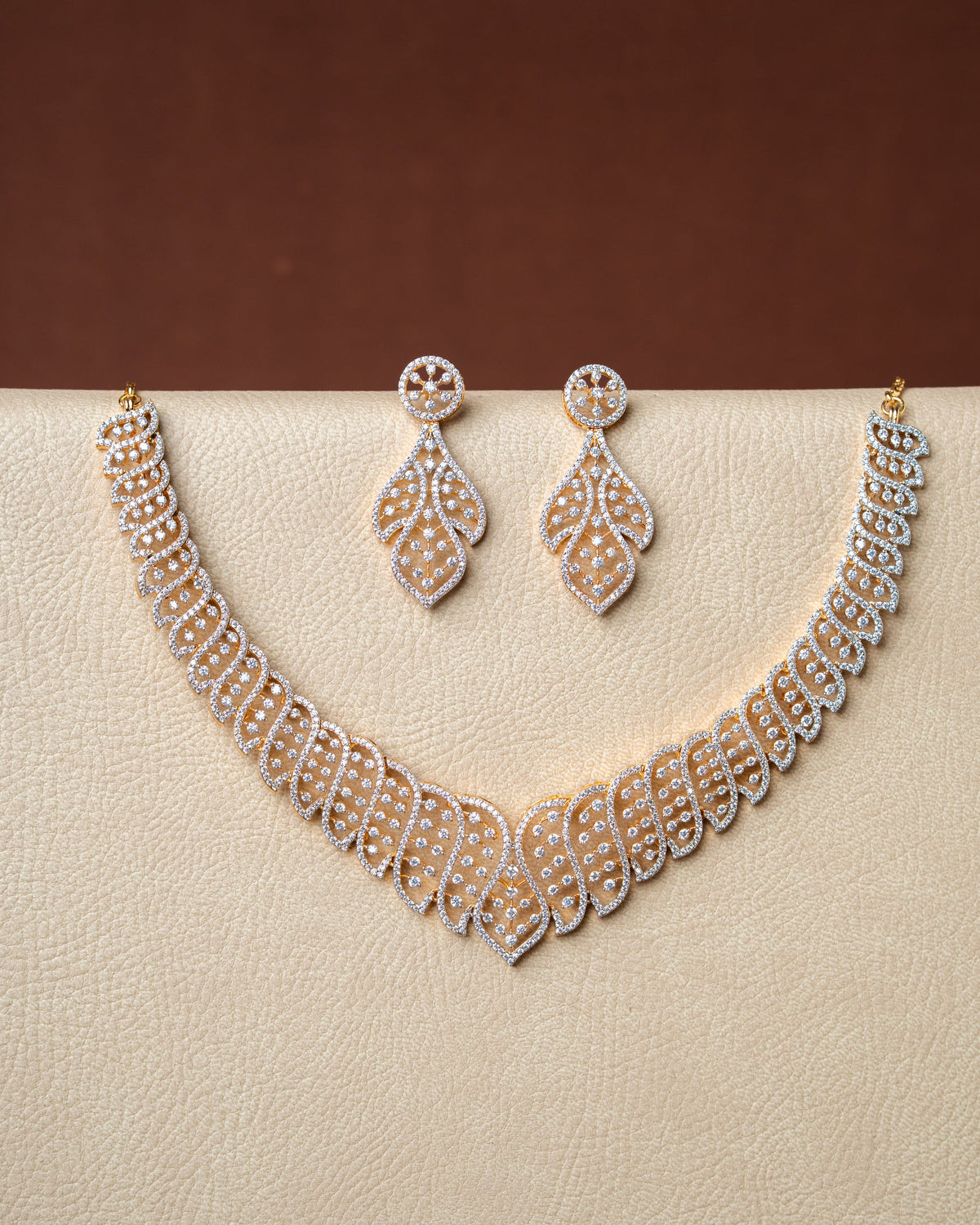 AD Zircon & Solitaire Necklace Set – Premium Party Wear